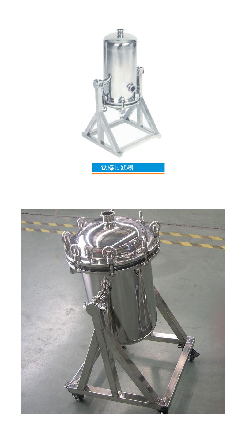 濾芯為鈦粉末燒結(jié)棒,流量大、精度高、耐高溫、耐腐蝕、五毒、無微粒脫落,使用壽命長。殼體材料采用進(jìn)口316L或304,內(nèi)表面經(jīng)拋光處理,表面粗糙度Ra0.4μm,進(jìn)口關(guān)口采用卡箍式,拆洗方便。同時筒體可作180度的反轉(zhuǎn),達(dá)到徹底清洗。
